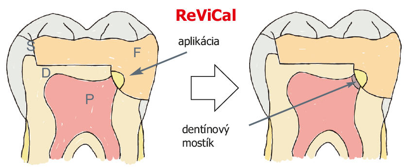 ReViCal je bioaktívny, svetlom tuhnúci materiál s MTA plnivom pre priame (P) a nepriame (Cp) prekrytie pulpy. Je takmer nerozpustný – po jeho nanesení a polymerizácii svetlom je možné okamžitá aplikácia adhezíva a pokračovanie v ďalšom ošetrení kompozitom (sendvičovou technikou) – výplň je tak možné dokončiť v jednom sedení.