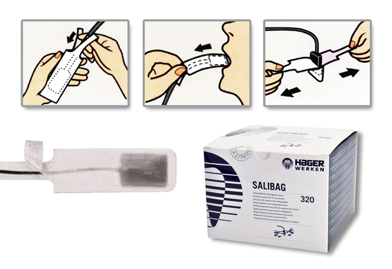 • Senzor sa vloží do ochranného návleku a umiestni do úst pacienta na röntgenografiu