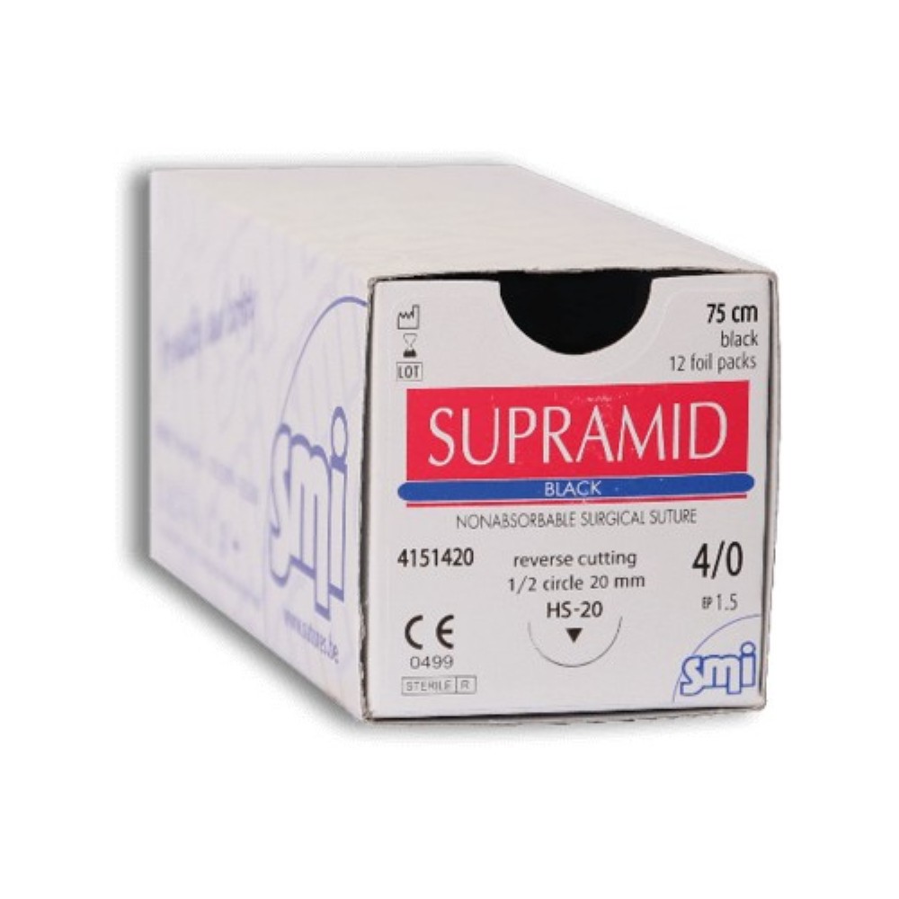 popis: Atraumatické chirurgické šitie neabsorbovateľné – supramid, 12 šití v balení.