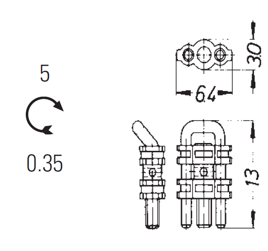 Skeletálna sektorová skrutka. môže sa použiť aj ako distálna skrutka s jednostranným vretenom, zahnutá.