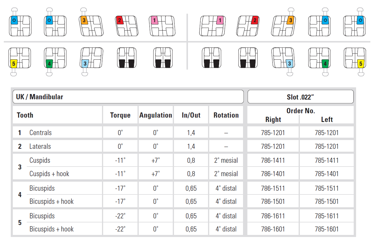 | 268950049 | SPRINT II Brackets, Roth .022 Bicuspids+Hook, T-17°, A0°, I/O0,65, R4°dist, L