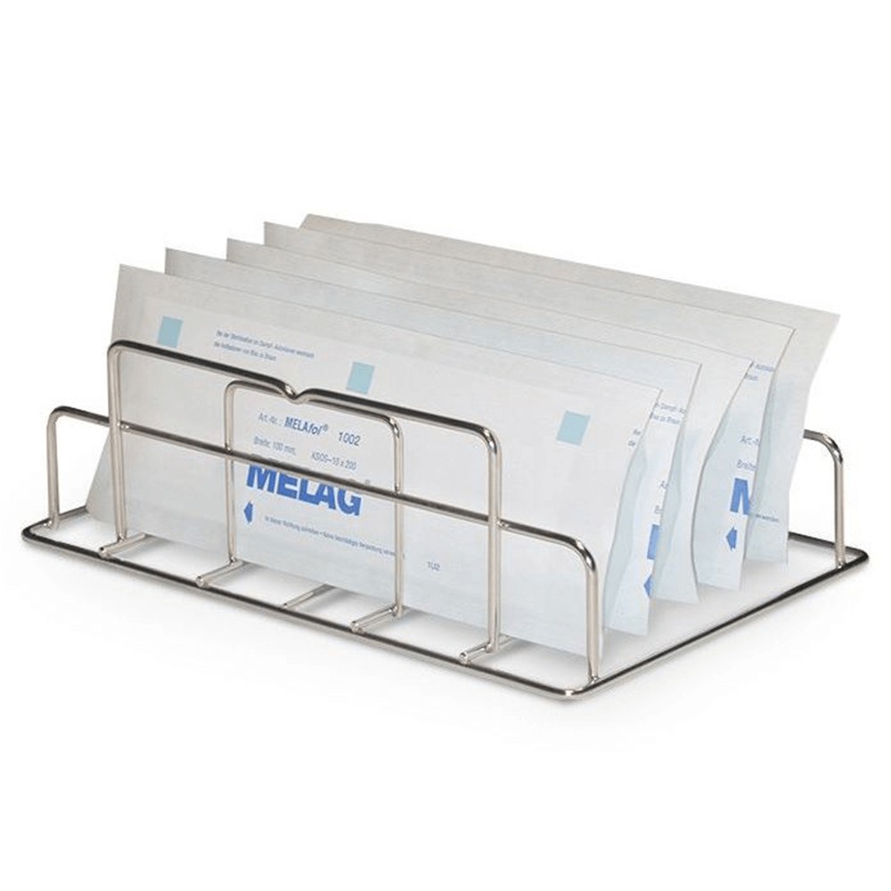 Držiak fólií pre parné sterilizátory s hĺbkou komory 35 cm na bezpečnú sterilizáciu zabalených nástrojov.