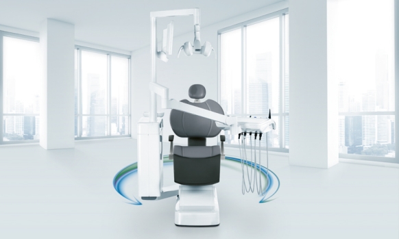 Kvalitná, spoľahlivá a ergonomická stomatologická súprava Intego Pro s variabilnou výbavou vo verzii CS s horným (bičovým) vedením hadíc.
