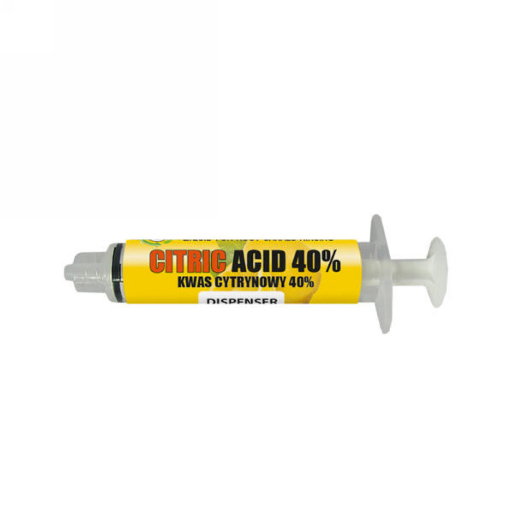 Striekačky na aplikáciu kysliny citrónovej 40%, objem 5 ml, balenie 20 kusov.