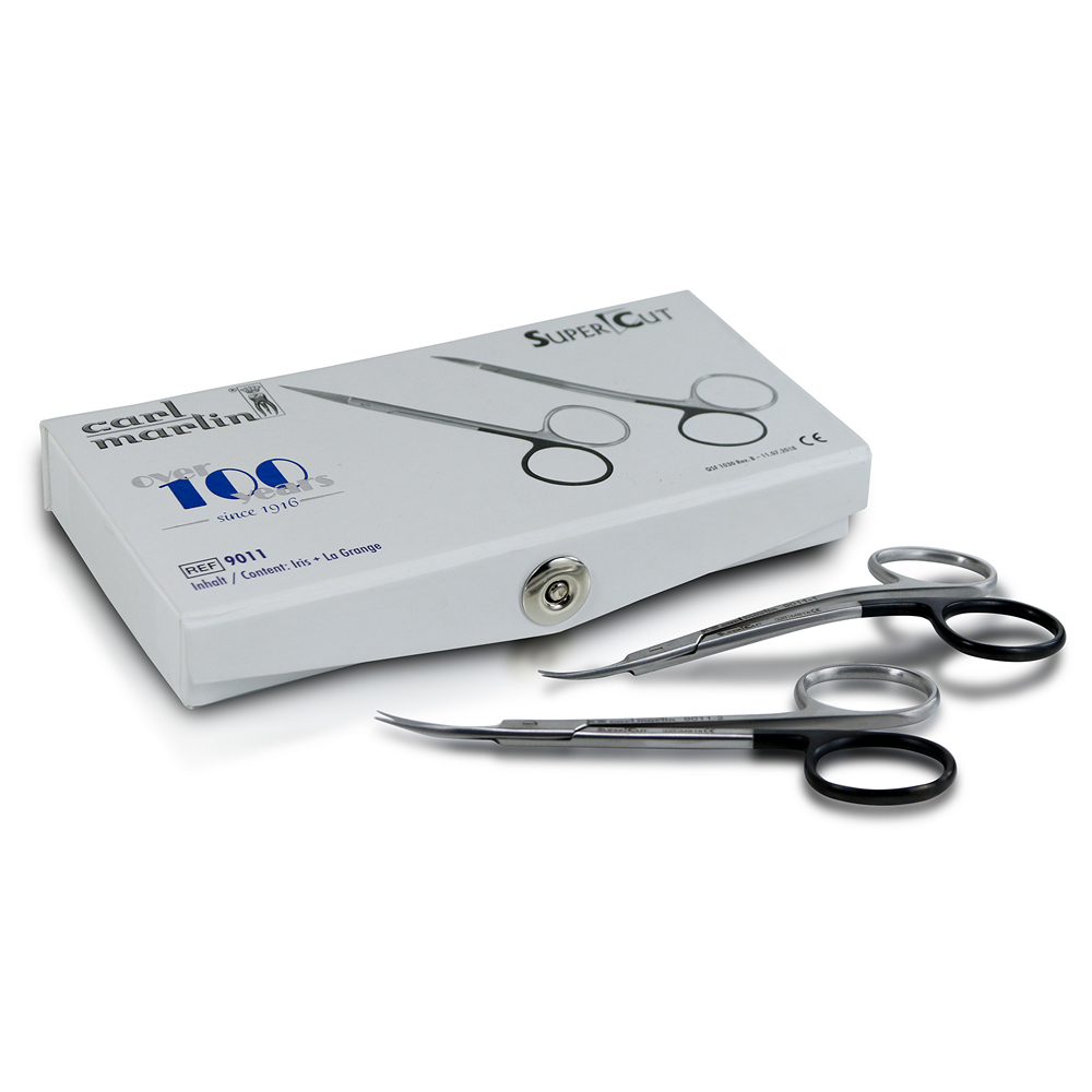 Dvojo nožníc na ďasno s ostrím SuperCut: IRIS 12 cm a LA GRANGE 12 cm s mikroozubením. Kvôli jednoduchej identifikácii je jeden krúžok na uchopenie pozlátený alebo je pochrómovaný dočierna. Jedna čepeľ je nabrúsená naplocho, vďaka čomu dosahuje ostrosť podobnú žiletke.