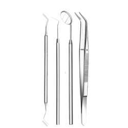 Súprava 4 nástrojov na úvodné vyšetrenie – lopatka Heidemann, pinzeta zahnutá, sonda, zrkadielko č. 4 ploché.
