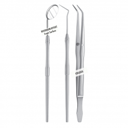 Súprava nástrojov s ergonomickou rúčkou, autoklávovateľná. Obsahuje sondu, zrkadielko a zrkadielko Relax FS Rhodium, 3 farebné varianty.