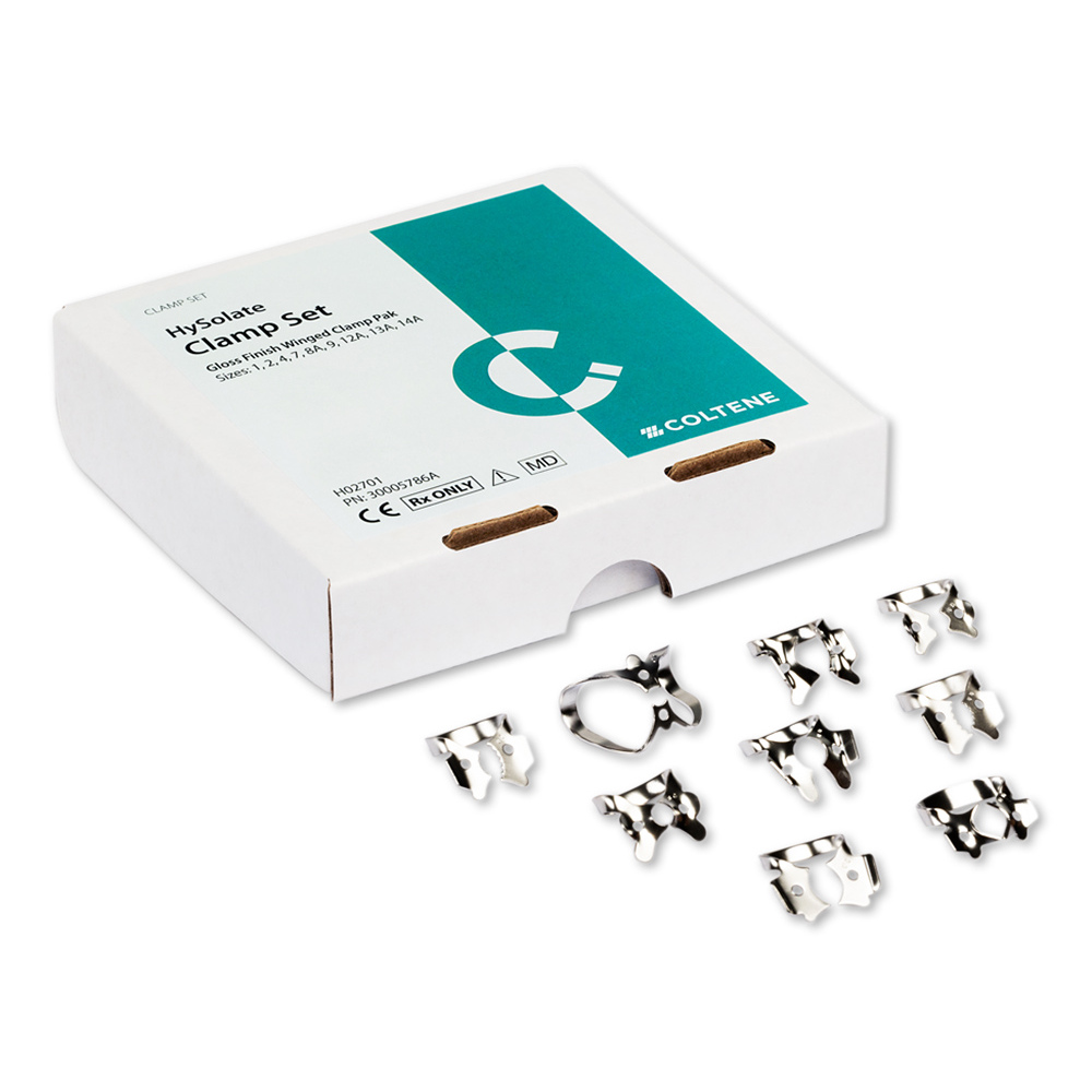 Osadenie koferdamu závisí aj od toho, ako je pripevnený k zubom. COLTENE zjednodušuje fixáciu s bezkrídelkovými alebo krídelkovými svorkami. Svorky s krídelkami majú výstupky na čeľustiach, zatiaľ čo bezkrídelové sú bez výstupkov. Naším cieľom je prispôsobiť aplikačné techniky štýlu každého zubára. Naše svorky sú vyrobené z vysoko kvalitnej nehrdzavejúcej ocele pre väčšiu odolnosť.