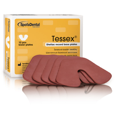 Bazálne šelakové doštičky na zhotovovanie individuálnych odtlačkových lyžíc pre odtláčanie bezzubých čelustí a výrobu báz voskových skusových šablón.