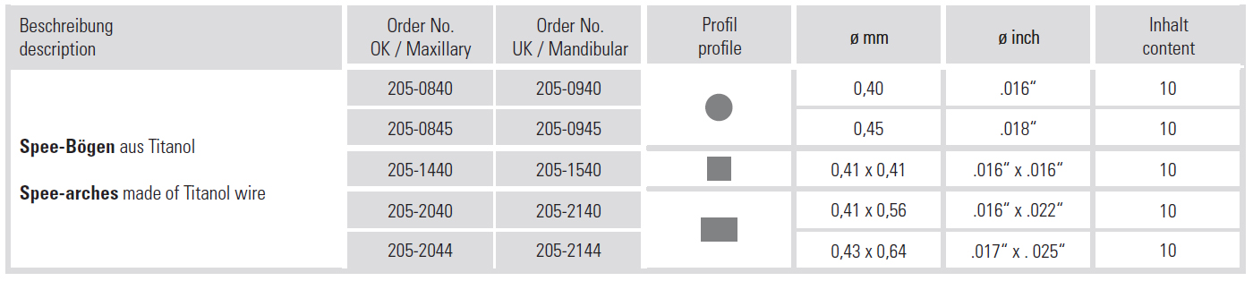 268930096 Titanol martensitic Spee arch .017x.025 205-7044