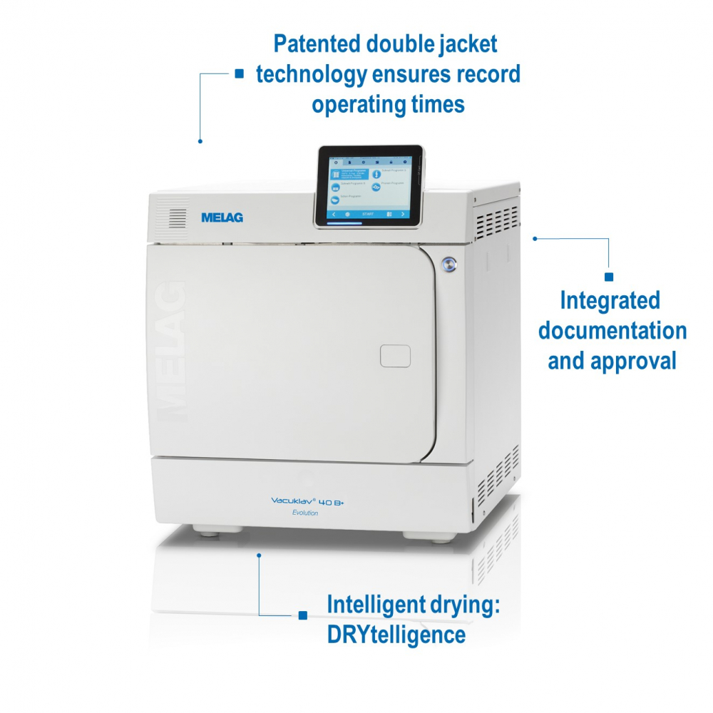 Desaťročia skúseností s vývojom inteligentných, energeticky účinných parných sterilizátorov v kombinácii s priekopníckou prácou špičkových inžinierov spoločnosti MELAG viedli k vývoju novej generácie autoklávov pre zdravotnícku prax: trieda Evolution. Autoklávy Vacuklav Evolution zaujmú vysokou kapacitou, intuitívnym konceptom ovládania a rekordnými prevádzkovými časmi. Cyklus triedy B s frakcionovaným predvákuom zaisťuje bezpečnú sterilizáciu aj zložitých nástrojov s dutým telesom, ako sú násadce alebo endoskopy.