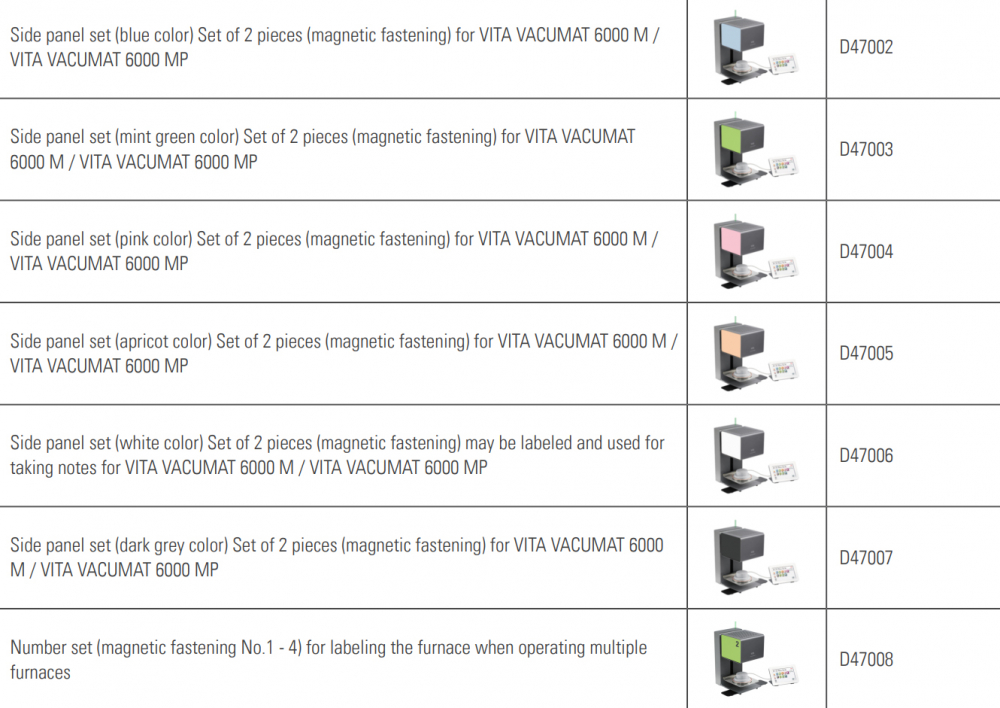 Bočné farebné panely na keramické pece VACUMAT 6000. 6 variantov (modrý, zelený, ružový, marhuľový, biely, tmavosivý) viac o produkte