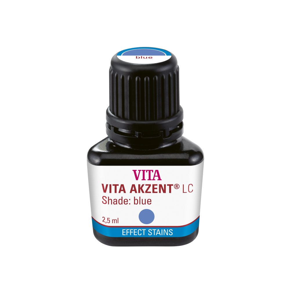 VITA AKZENT LC sú kompozitné svetlom tuhnúce farby na reprodukciu individuálnych farebných efektov a na realizáciu farebných korektúr. Systém farieb presviedča okrem mnohostrannosti účinnou presnou aplikáciou farieb a dobrou odolnosťou farieb resp. lesku. Farby je možné univerzálne použiť pre extraorálnu charakterizáciu zubnej náhrady z hybridnej keramiky, CAD/CAM kompozitu, fazetovacieho kompozitu, bázy protéz, akrylové polyméry pre 3D tlač a konfekčné zuby, ako aj internú charakterizáciu pri fazetovaní živicou.
