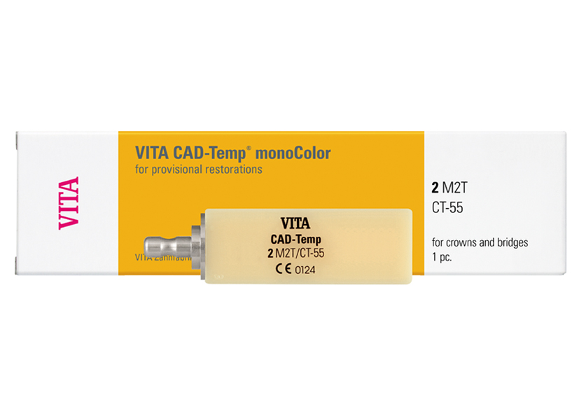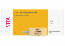 VITA CAD-Temp monoColor sú vyrobené z unikátneho bezvláknového, homogénne zosieťovaného akrylátového polyméru s mikroplnivom, tzv. MRP (Microfiller Reinforced Polyacrylic).