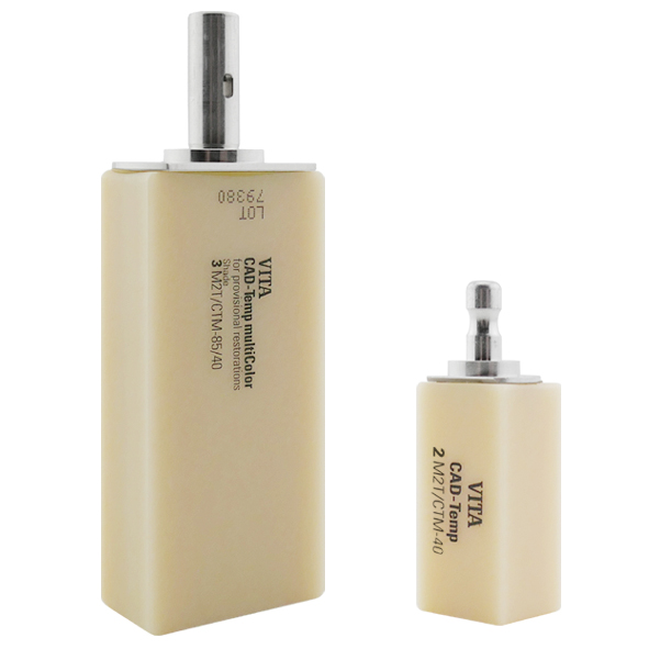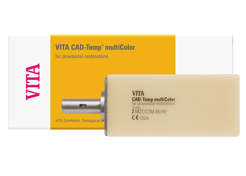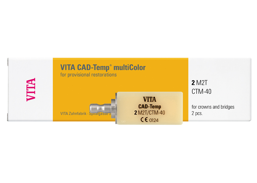 VITA CAD-Temp multiColor sú polychromatické bloky na výrobu estetických dočasných koruniek a mostíkov. Optické a mechanické vlastnosti umožňujú výrobu monolitických rekonštrukcií až do rozsahu 2 medzičleny s klinickou dobou používania až do 3 rokov.