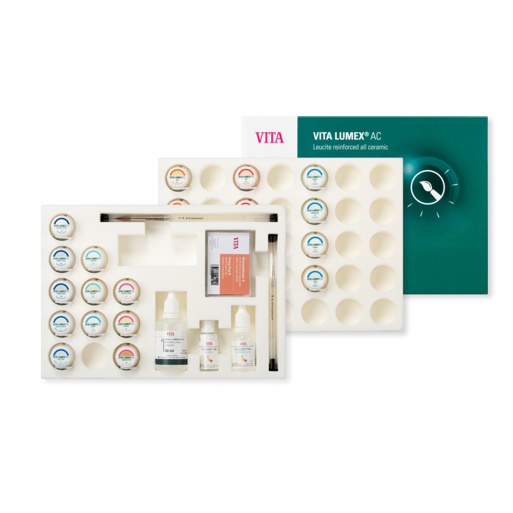 VITA LUMEX® AC je vysoko estetický fazetovací keramický systém pre všetky bežné celokeramické konštrukčné materiály. Presviedča maximálnou farebnou stálosťou, excelentnou svetelnou dynamikou a presným spracovaním.Tento sklokeramický fazetovací systém je zosilnený leucitom s inovatívnym zložením materiálu pre farebne stále, živé a spoľahlivé výsledky. Používa sa na fazetovanie všetkých bežných celokeramických konštrukčných materiálov (oxid zirkónový, lítiumdisilikát a živcová keramika) a na vytváranie rekonštrukcií bez použitia podporných konštrukcií (napr. fazety).