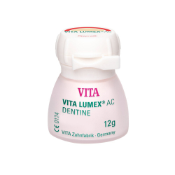 VITA LUMEX® AC je vysoko estetický fazetovací keramický systém pre všetky bežné celokeramické konštrukčné materiály. Presviedča maximálnou farebnou stálosťou, excelentnou svetelnou dynamikou a presným spracovaním.Tento sklokeramický fazetovací systém je zosilnený leucitom s inovatívnym zložením materiálu pre farebne stále, živé a spoľahlivé výsledky. Používa sa na fazetovanie všetkých bežných celokeramických konštrukčných materiálov (oxid zirkónový, lítiumdisilikát a živcová keramika) a na vytváranie rekonštrukcií bez použitia podporných konštrukcií (napr. fazety).