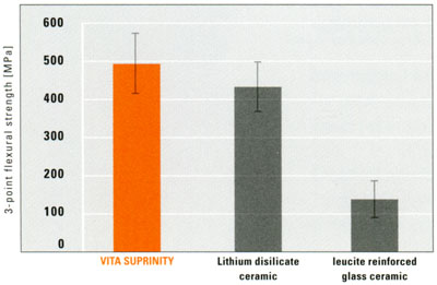 Materiál obsahuje okrem oxidu líthia a oxidu kremičitého aj cca 10% oxidu zirkoničitého, ktorý je "rozpustený" v keramickej báze materiálu. Vďaka vysokej odolnosti voči mechanickej záťaži zabezpečuje materiál SUPRINITY PC vysokú spoľahlivosť a dlhotrvajúci klinický úspech. Frézovaním v predkryštalickom "mäkkom" stave sa šetria frézy a nedochádza k vyštiepovaniu okraja. Materiál pritom vo finálnom stave dosahuje pevnosť v ohybe až cca 500 MPa.