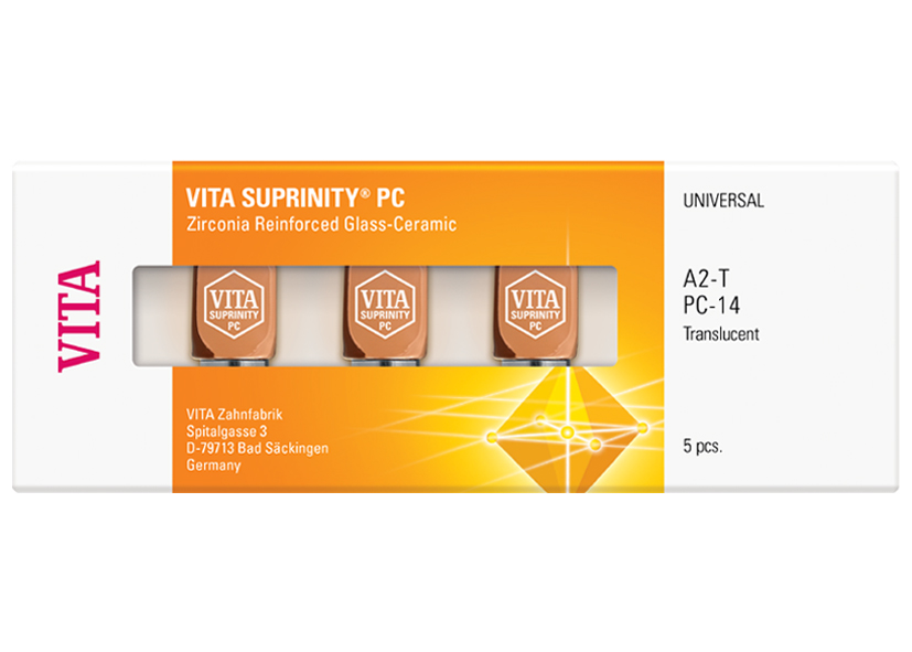 SUPRINITY PC má ideálne optické vlastnosti podobné prirodzenému zubu. Výslednú prácu je možné individalizovať použitím glazúry VITA Akzent Plus alebo technikou "Cut-Back" - (redukcia rezacej hrany a domodelovanie materiálom VITA VM11). Materiál vykazuje prirodzenú fluorescenciu a opalescenciu.