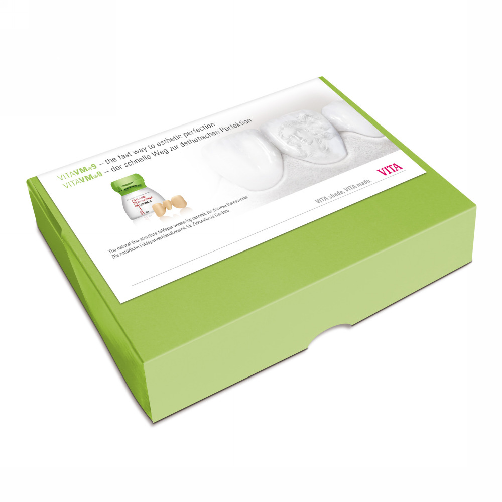 VITA VM9 je vysoko estetická živcová keramika s jemnou štruktúrou, ktorá je dokonale prispôsobená hodnote koeficientu tepelnej rozťažnosti zirkónových konštrukcií (cca 10,5, napr. VITA YZ) – bez ohľadu na to, či sú biele, farebné alebo priesvitné. Okrem toho môžete VITA VM9 použiť aj na individualizáciu výplní vyrobených z lisovaných keramických peliet VITABLOCS MARK II. Hlavnými komponentmi sú materiály z čistého potašu a albitu, ktoré ponúkajú brilantné farebné efekty, ako aj optimálne fyzikálne vlastnosti, ako sú extrémne hodnoty pevnosti v ohybe. Vďaka homogénnemu kompaktnému povrchu VITA VM9 vynikajúco napomáha  brúseniu a lešteniu, najmä in situ. Výsledkom sú hladké a kompaktné povrchy. Výrazne je obmedzené hromadenie plaku na keramickom povrchu, čo podporuje pacienta v starostlivosti o jeho kvalitnú výplň. VITA VM 9 je vysokokvalitný systémový komponent, ktorý poskytuje inovatívny koncept VITA VM – univerzálne riešenie pre všetky bežné indikácie. Kovokeramika, celokeramika alebo kompozit: možnosti sú nekonečné!