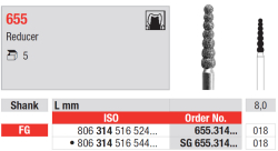 Diamantový vrták Reducer na preparáciu koruniek, 655 / G 655 zelená (výpredaj) / SG 655 čierna, mandrel FG, veľkosč 018. viac o produkte
