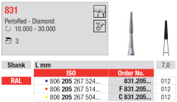 Diamantový vrtáčik parodontologický PerioRed, modrá 831, červená F831, žltá C831, veľkosť 012, mandrel RAL