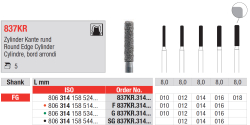 Diamantový vrták s pracovnou časťou v tvare valca so zaoblenými hranami, 837KR / F 837KR červená / G 837KR zelená / SG 837KR čierna, mandrel FG, veľkosti od 010 do 016. viac o produkte