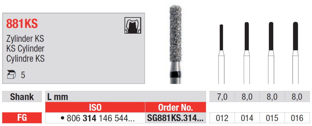 Diamantový vrták s pracovnou časťou v tvare valca so zaobleným koncom, SG 871KS čierna, mandrel FG, veľkosti 012 až 016. viac o produkte