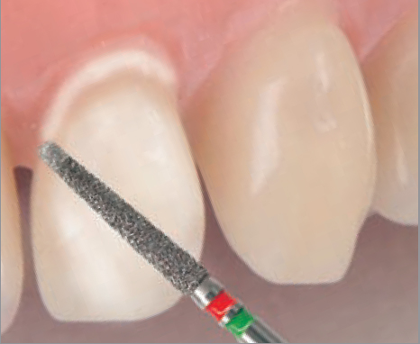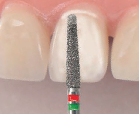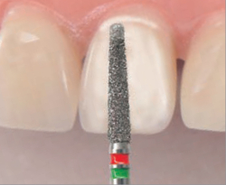 GF844 TwoGrit je diamantový rotačný nástroj na preparáciu a dokončovanie bez výmeny nástroja pri príprave na fazetu. Pracovná časť diamantových nástrojov TwoGrit pozostáva z dvoch zón s rôznou zrnitosťou. Hlavná kónická časť má hrubú zrnitosť a hrot jemnú zrnitosť.