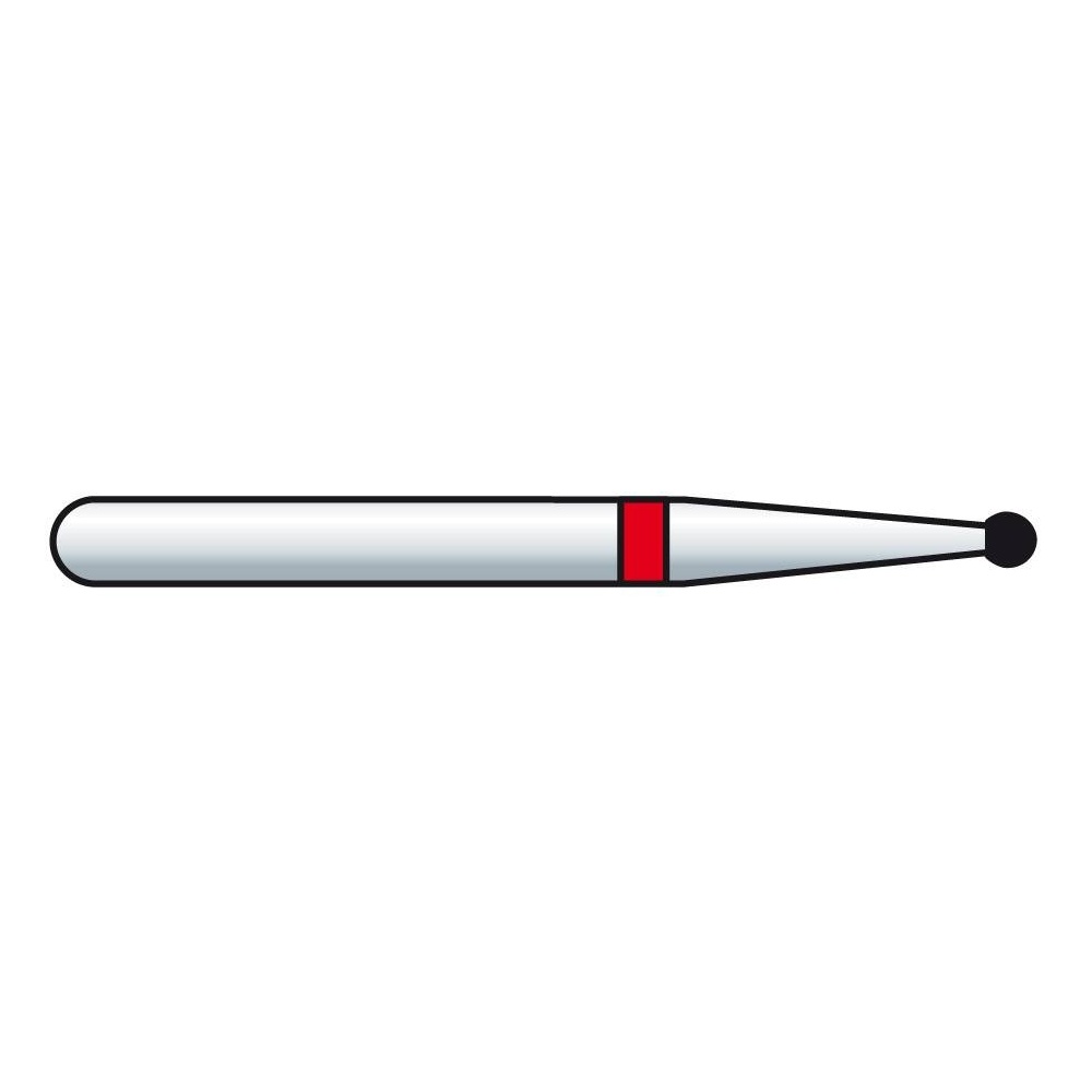 Diamantový vrták s pracovnou časťou v tvare guľôčky s golierom, 802 / F 802 červená / G802 zelená / SG 802 čierna, mandrel FG, veľkosti od 008 do 023.