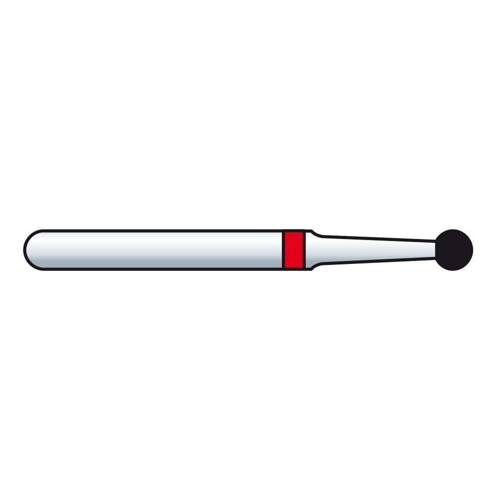 Diamantový vrták s pracovnou časťou v tvare guľôčky s golierom, 802 / F 802 červená / G802 zelená / SG 802 čierna, mandrel FG, veľkosti od 008 do 023.