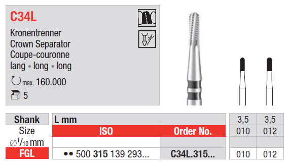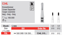 Tvrdokovový vrtáčik na prepiľovanie koruniek FGL C34L, čierna značka, veľkosť 010 a 012, 1 ks.