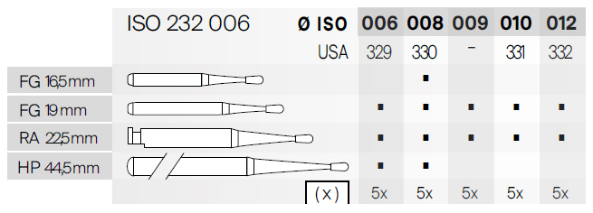 | 084500328 | Amalgam bur FG, ISO 012, 19mm