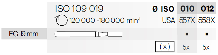 Tvrdokovový vrtáčik valcovitého tvaru na odstraňovanie koruniek. ISO 010/012, FG, dĺžka 19 mm. viac o produkte