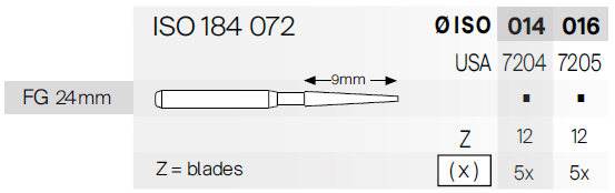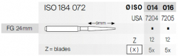 Vrtáčik – frézka na úpravy a dokončovanie v tvare kužeľa so zrezaným špicom, priemer ISO 014/016, mandrel FG, dĺžka 24 mm, balenie 5 kusov.