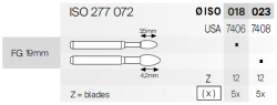Vrtáčik – frézka na úpravy a dokončovanie v tvare plamienka so špicatým koncom, priemer ISO 012-018, mandrel FG, dĺžka 19 mm, balenie 5 kusov.