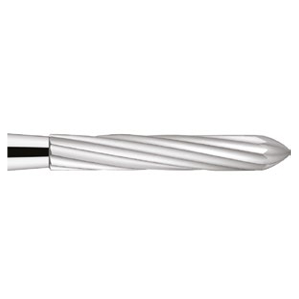 Finírovací vrták z karbidu volfrámu v tvare kónusu s bezpečnostným zakončením, dlhý, červená TC135, žltá TC135F, biela TC135UF, modrá TC135S, veľkosť 014, mandrel FG.