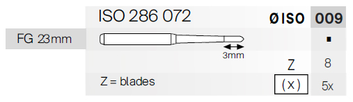 Pri vrtákoch z karbidu volfrámu by sa nemali prekračovať nasledujúce hodnoty otáčok za minútu: Veľkosti ISO: 006-010 – 300 000 ot./min.