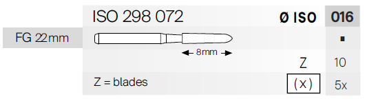 Vrtáčik – frézka na úpravy a dokončovanie v tvare kužeľa so špicatým koncom, priemer ISO 016, mandrel FG, dĺžka 22 mm, balenie 5 kusov. viac o produkte