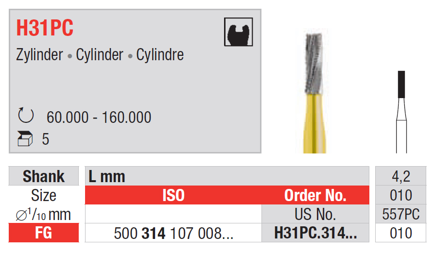 Tvrdokovové vrtáčiky FG PowerCut na prepiľovanie koruniek H31RPC.314, veľkosti 010 a 012.