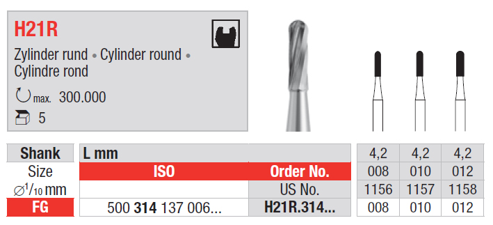 | 064500506 | Vrtáky tvrdokovové FG H21R.314.008