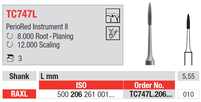 Vrtáčik parodontologický z karbidu volfrámu PerioRed Instrument II, veľkosť 010, mandrel RAXL.
