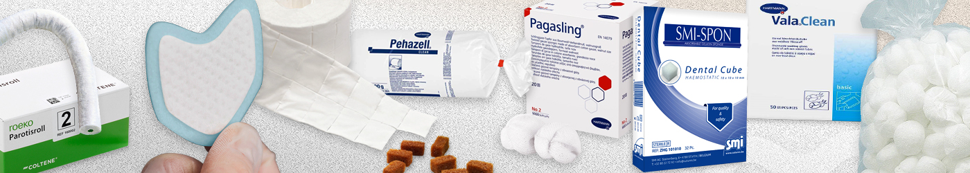 Kvalitné vatové štvorčeky, valčeky, gázové tampóny, buničitá vata sú každodenným nevyhnutnými pomôckami pri stomatologickom ošetrení. Predovšetkým od firiem Hartmann a Roeko.
