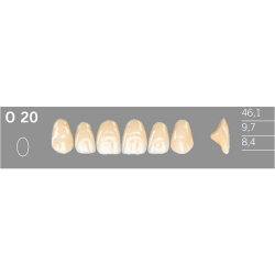 Vrstvené akrylátové zuby Artic 6, predné horné, ovoidný tvar, v odtieňoch VITA (A1-D4).