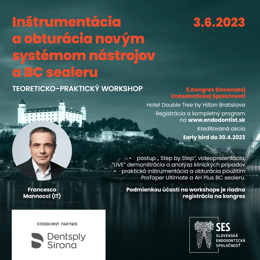 Pozývame Vás ako spoluorganizátor na workshopy s Dr. Francescom Mannoccim (Veľká Britania) ktoré sa uskutočnia v rámci V. kongresu Slovenskej endodonitckej spoločnosti.