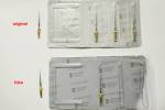 4. Balenie nástrojov - podľa balenia nástrojov sa falošné napodobeniny dajú rozpoznať len veľmi ťažko, nakoľko výrobca Dentsply Sirona má viac druhov balení pre rôzne svetové regióny. Tieto sa naviac aj menia v čase (zmeny loga, korporátneho dizajnu a pod.).