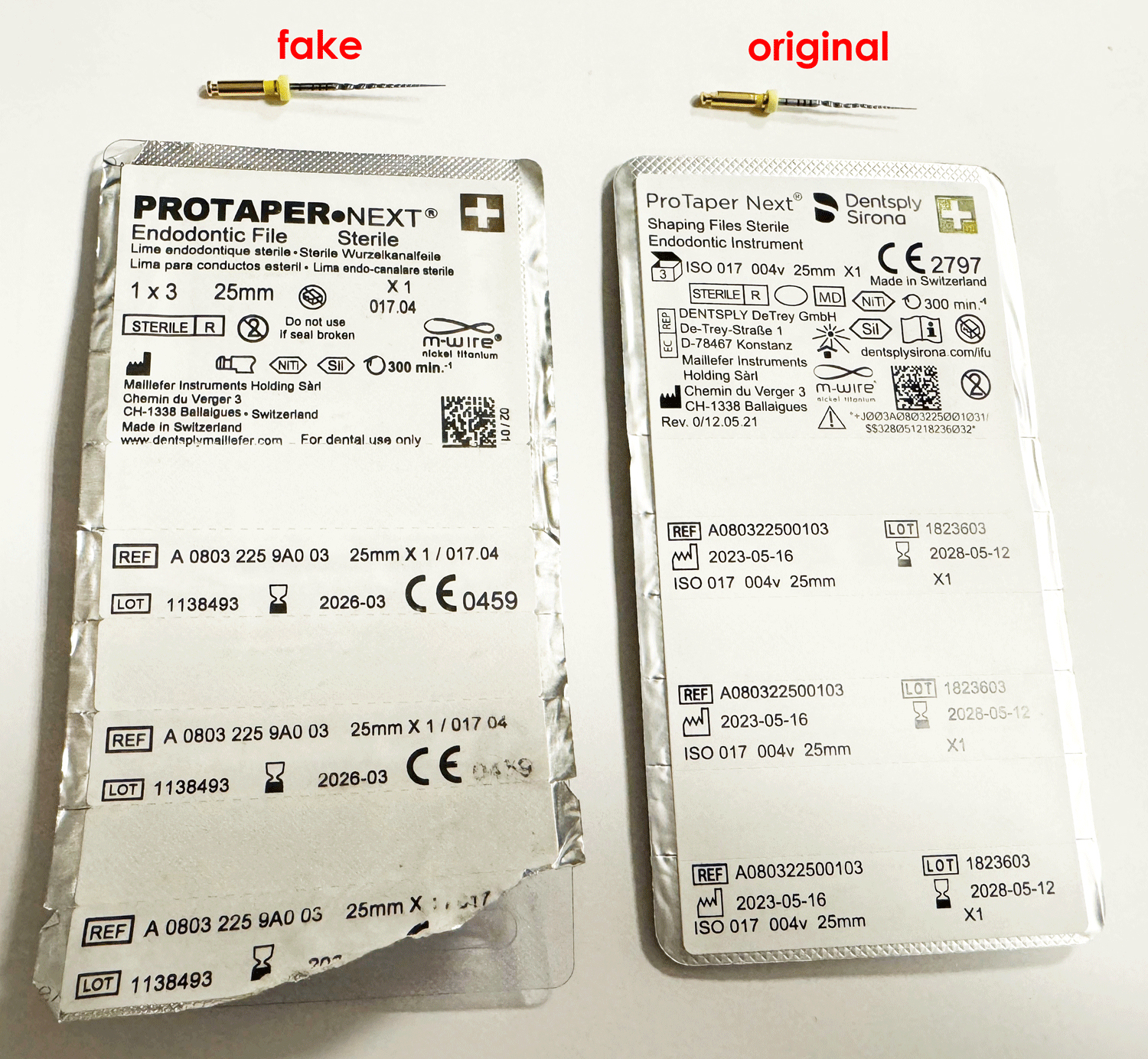 Na našom trhu sa objavili falošné endonástroje Protaper Next. Dovoľte nám upozorniť na niektoré znaky, ktoré Vám pomôžu odhaliť falošné nástroje.